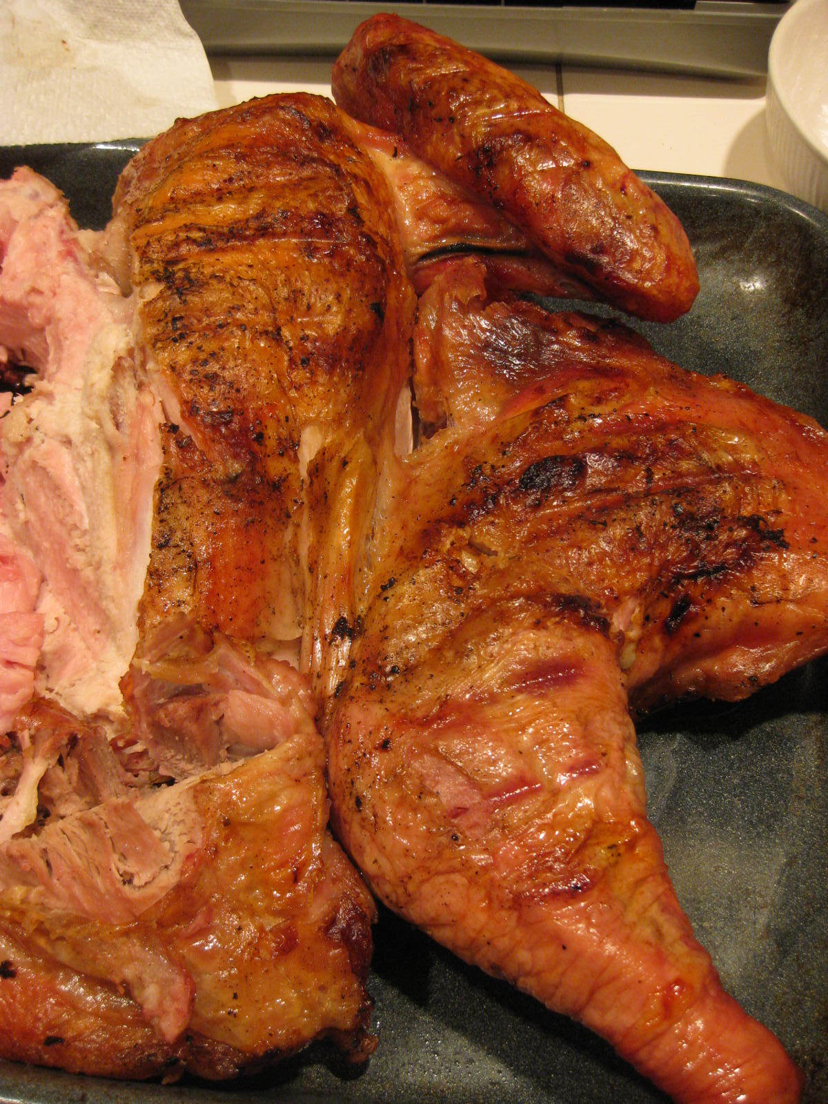 So first of all, here are the results of all that raw fish and fowl I displayed a few days ago. Grill roasted and smoked turkey, pate and gravlax. Recipes provided upon request.